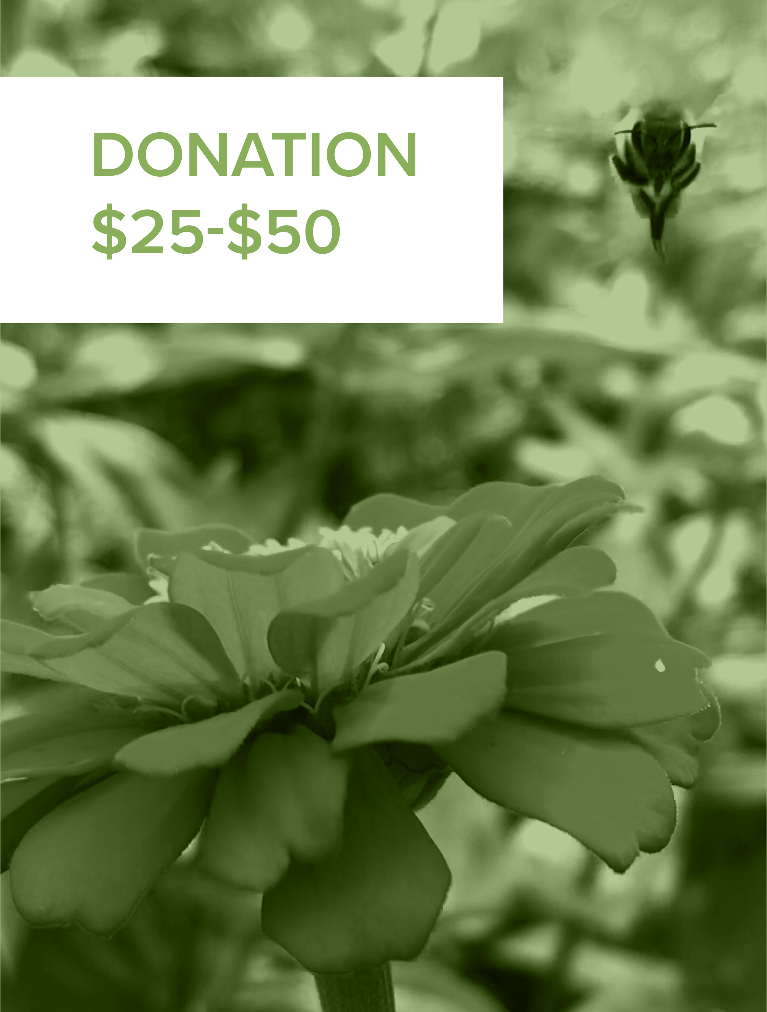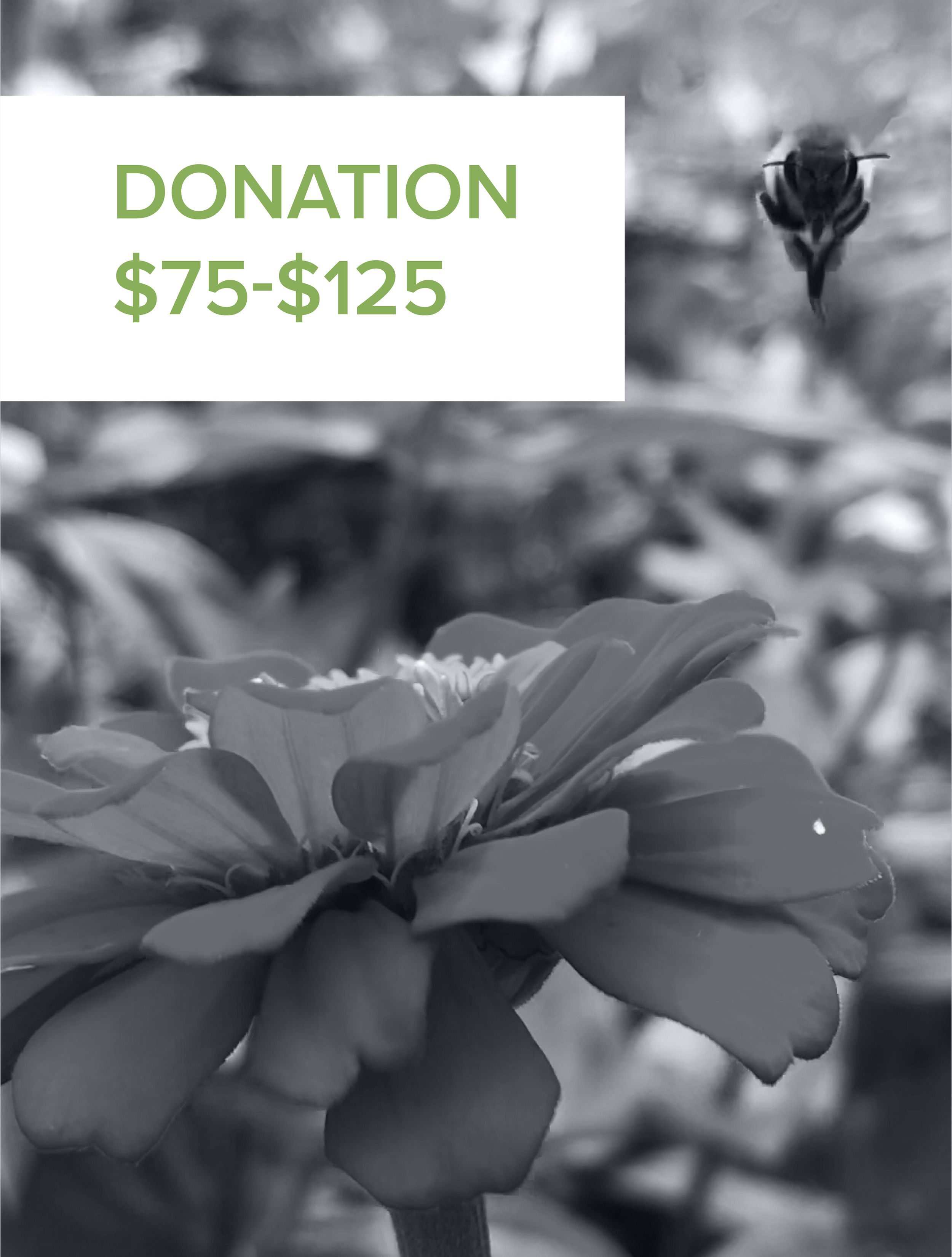 Pollinator-Friendly Educator Sponsor $25,000.00 Hive Sponsor $2,500.00 Hive Maintenance Sponsor $1,700.00 Native Pollinator Garden Sponsor $275.00 Pollinator Friendly Garden Sponsor $125.00 Worker Bee BELIEVER from $25.00 Pollinator PROMOTER from $75.00 Native Bee HERO from $150.00 Monarch CHAMPION from $200.00